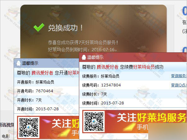 5、7天好莱坞会员CDKEY 兑换秒到账,兑换地址 http://film.qq.com/duihuan.html