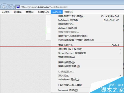 6、对付这些问题,进入IE的《工具》,选择兼容性视图设置,如果没有找到工具菜单,在上方菜单条单点右键,选择显示菜单栏