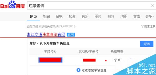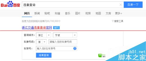 百度搜索越来越强大,功能也越来越多,现在我们可以通过百度搜索查询自己的车辆是否有违章信息了,非常方便实用哦。