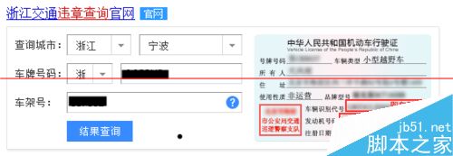 2、根据系统提示,输入自己的查询信息,如车辆牌照号,车辆车架号(旁边有提示图,在行驶证上哪里是车架号有标注。)