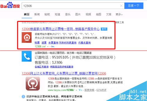 2、我们在百度的首页搜索12306的关键字