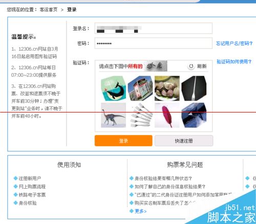 5、在上边输入我们账号密码,现在的验证码已经看文字找图片了