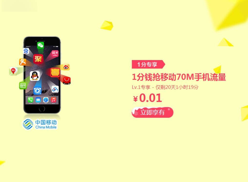 一分钱抢移动70兆流量,一分钱抢移动50兆流量,一分钱抢移动100兆流量,一分钱专享一分钱专享美国品质EVGA GTX750Ti显ka,一分钱专享限量抢购!河狸家50元优惠券,一分钱专享天天网满100减50七夕专享优惠券,一分钱专享海尔Mini V2净化器100元优惠券,一分钱专享中国酒世界满299立减50元优惠券。