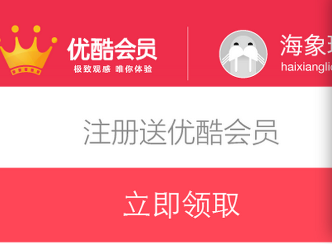 2.注册海象理财领取优酷会员。