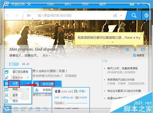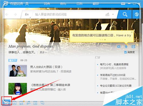 1、在pdf格式的文档中,不是所有的内容都能够被选中的,也就是使用方式一大家常用的方式,是不能够生效的,下面介绍高级功能,不当能够对图片格式的文档取词,甚至连菜单栏的词语也能够取词翻译。进入有道词典界面,点击左下角的“有道词典”图标