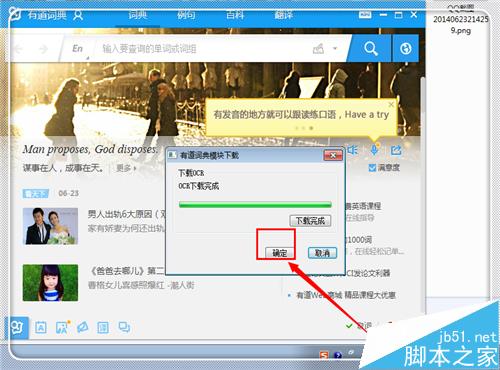 3、点击菜单栏的“取词划词”,然后点击一下“下载OCR取词模块”,下载中。
