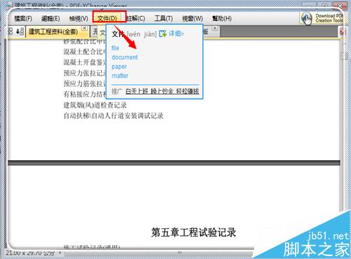 6、这时候再次进入pdf文档,这里以文档的菜单栏为例,使用鼠标光标指着需要翻译的文字按住鼠标左键,这时候就出现翻译了,同样,图片版的pdf文件也可以如此地进行取词翻译。