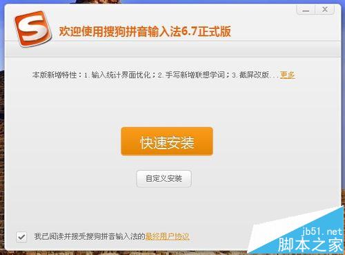 1、我们首先百度搜索搜狗输入法,下载后直接进行安装。我们选快速安装。