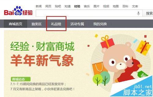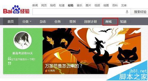 1、打开百度经验首页,在首页中的菜单栏中有个商城的栏目,点击商城