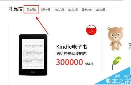 2、商城中有两个区域,活动区和礼品馆,我们找到礼品馆,在礼品馆下面有个百度周边的栏目,点击百度周边