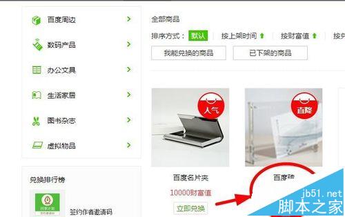 3、在周边模块我们可以找到百度砖礼品,点击立即兑换