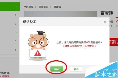 4、进入到兑换的界面及百度砖的详细说明介绍页面,此次兑换需要消费28000财富值哦。