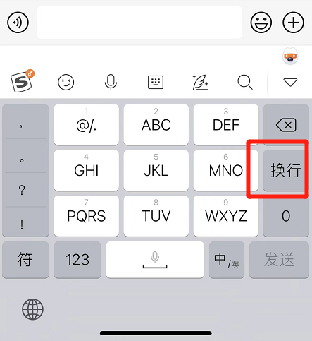 在搜狗输入法界面,轻点“换行”功能键。