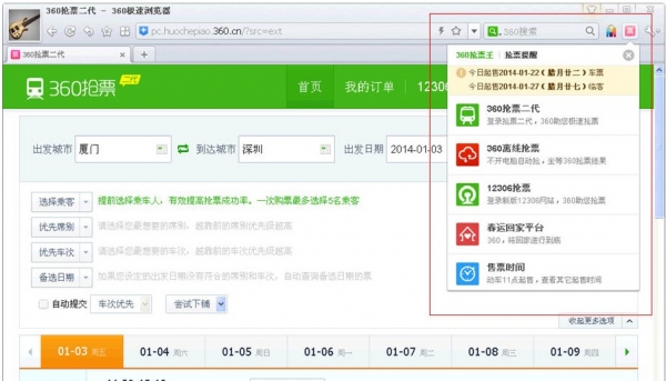 1、首先打开360浏览器抢票软件,如下图: