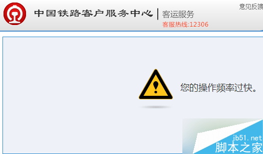 12306显示“您的操作频率过快”怎么办?相信最近几天大家都被这个问题给难住了吧,通过12306买票的小伙伴们很多都提示您的操作频率过快,无法登陆12306网站,那么这个问题怎么解决?怎么登陆12306?来看看下面大家总结的办法吧。