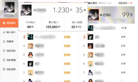 如果你登陆了搜狗输入法,还可以查看好友排名