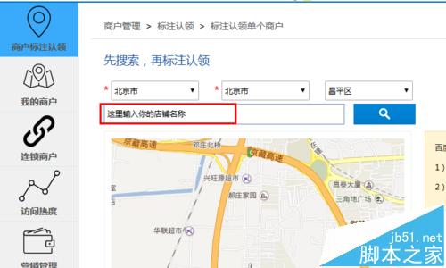 注:如果您的商铺在百度地图上已经存在,搜索到后您可以直接认领。如果您的商铺在百度地图上还不存在,您可以先标注再进行认领。