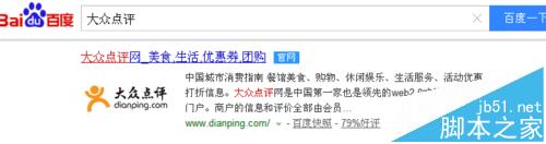 1、首先百度搜索“大众点评”,找到大众点评的官网,也就是带有蓝色图标显示“官网”的这一个链接,点击打开;