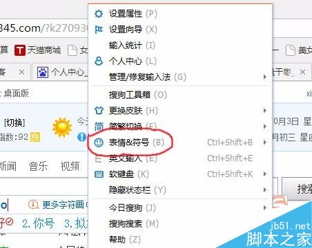 第三种方法是右键搜狗输入法图标上出现的S,点击出现的表情&符号。再在出现的菜单里选择百分号即可