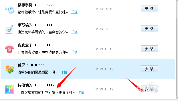 2、打开“扩展功能管理器”之后,我们点击查看“推荐扩展”标签页,然后在推荐的扩展中找到“输入特效”,点击“安装”。