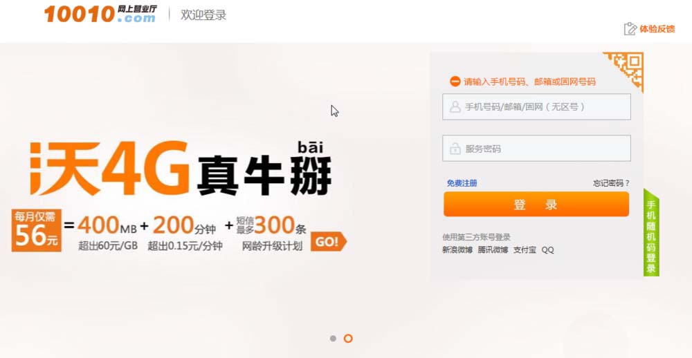 1、首先进入联通公司网上营业厅,网页左上角用哔哩哔哩电话卡登录或注册