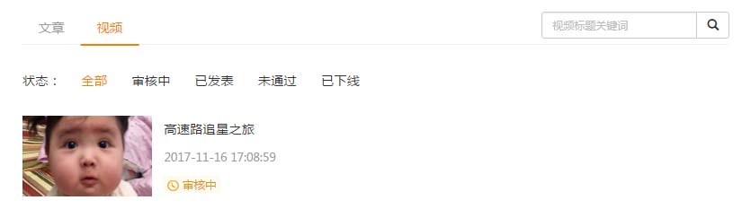 7、完成以上步骤并且编辑完成视频信息后,点击提交,跳转到内容管理页面,可以查看刚刚发表的视频,后面就是稍等视频审核通过啦