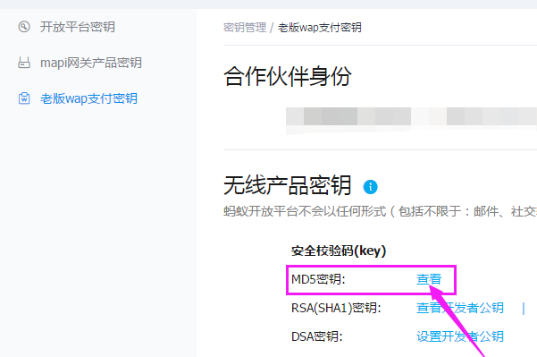 5、选择【老版wap支付密钥】。