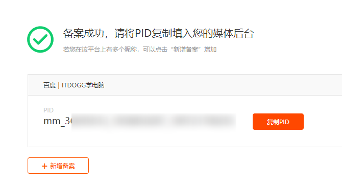 6、备案成功后生成一串PID字符,复制过来。
