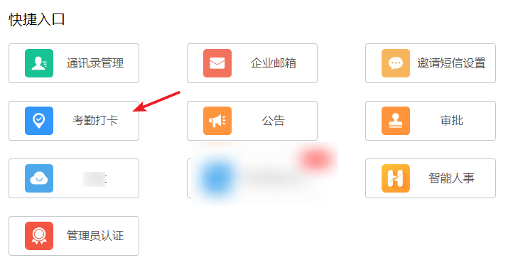 1、打开进入管理官网,管理员账号登录,快捷入口中打开【考勤打卡】