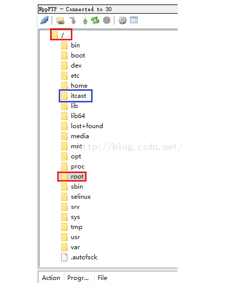 我们的配置文件不在root目录下,在/usr/目录下,那么我们怎么到顶级目录呢,我们只需双击图最上方的那个"/"即可,如下图所示,发现我们已经到了服务器的最顶级目录,我们可以进入任何我们想要进去的目录。