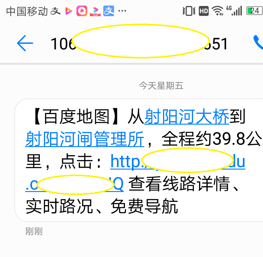 5、查看手机短信,真的收到规划路线: