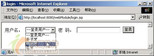 我们在login.jsp中提供一个用户名下拉框、一个密码输入框以及一个登录提交按钮,其代码如下:
