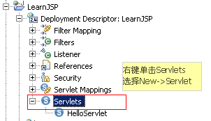 右键单击Deployment Descriptor中的Servlets,选择New->Servlet。