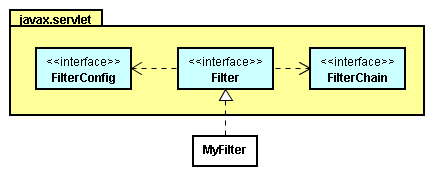Filter是个接口,位于 javax.servlet.Filter。它与其他接口的关系如下: