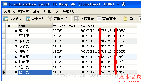String insert_sql = "INSERT INTO biandianzhan_point_tb VALUES('" + id + "','" + name + "','" + voltage_level + "',GeometryFromText('POINT (" + lon + " " + lat + ")') )";