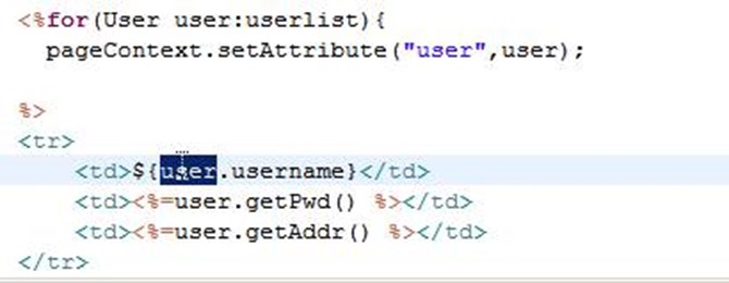 <%=user.getAddr()%> 等价于 ${user.addr}