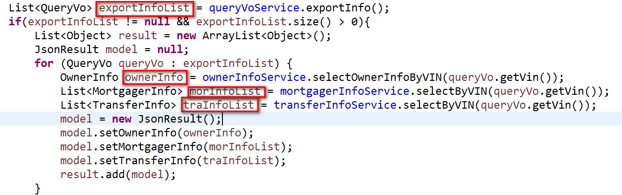 List<MortgagerInfo> morInfoList = mortgagerInfoService.selectByVIN(queryVo.getVin());