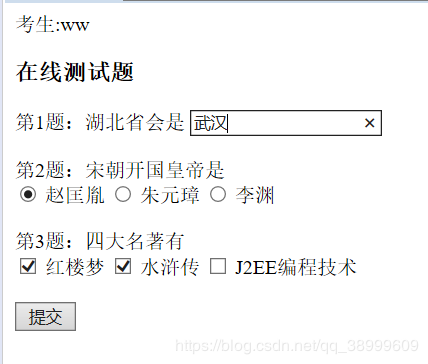 用户输入用户名及密码后便进入测试页面,测试页面的第一行显示用户名,之后显示题目信息。