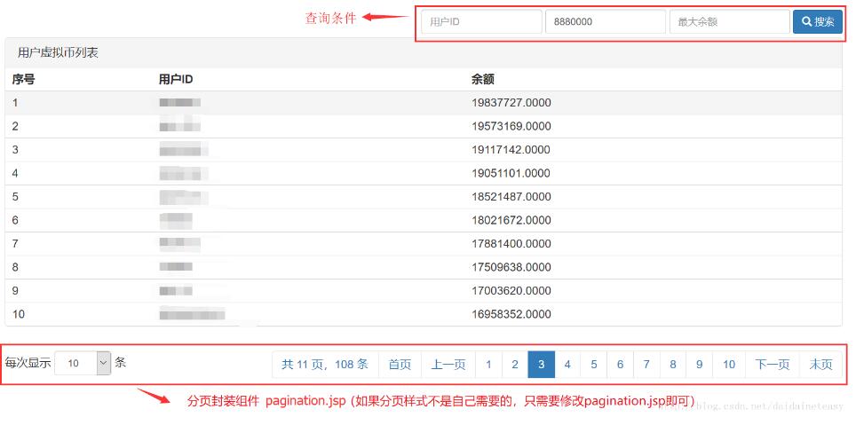 **每次需要分页,只需要操作上边这两步,是不是很简单啊~~。**接下来,给大家贴出封装的pagination.jsp代码,和其它的一些帮助类的代码。