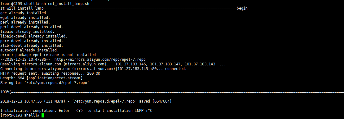 read -p "Initialization completion, Enter (Y) to start installation LNMP :" n