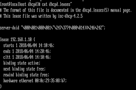 在服务端上查看/var/lib/dhcpd/dhcpd.leases~文件可知租用时间等信息: