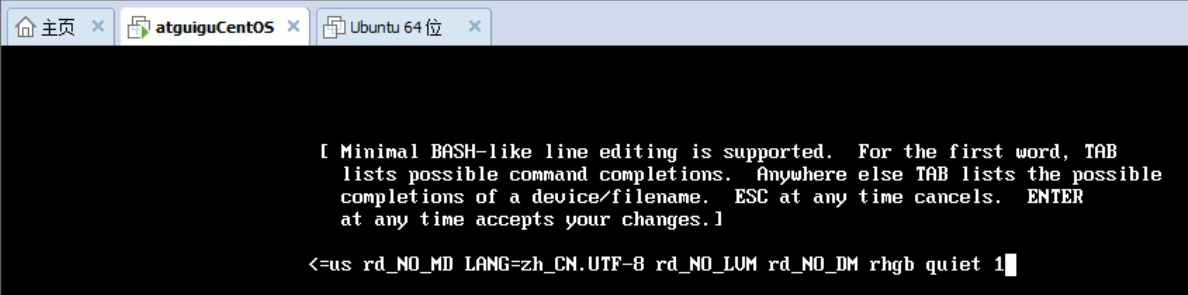 再最后一行按一个空格和1(我们输入的那个1就是让我们进入1级运行级别,即单用户模式,)
