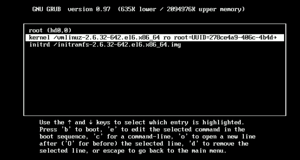 返回到这个界面了,然后我们再输入b来启动就会进入到单用户模式,而且是以root用户登录,不需要密码