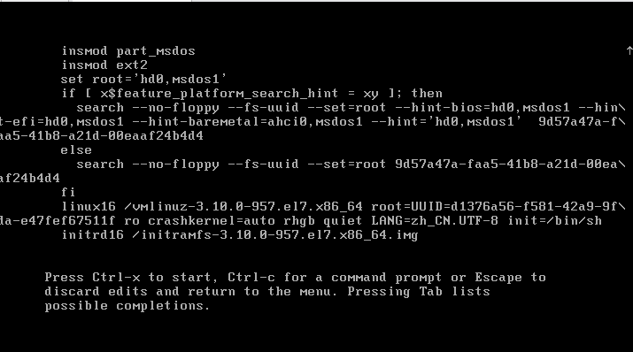 思路:进入到单用户模式,然后修改root密码。因为进入单用户模式,root不需要密码就可以登录了。