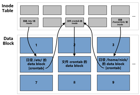 我们知道,在 Linux 系统中,每个文件对应一个 inode,文件的内容在存储在 inode 指向的 data block 中。要读取该文件的内容,需要通过文件所在的目录中记录的文件名找到文件的 inode 号,然后通过 inode 找到存储文件内容的 data block(参考《Linux 文件与目录》)。