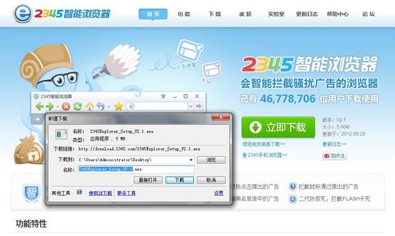 1、 首先,在官网下载V2.1最新版的2345智能浏览器:ie.2345.com 或 脚本之家下载(https://www.jb51.net/softs/59264.html)