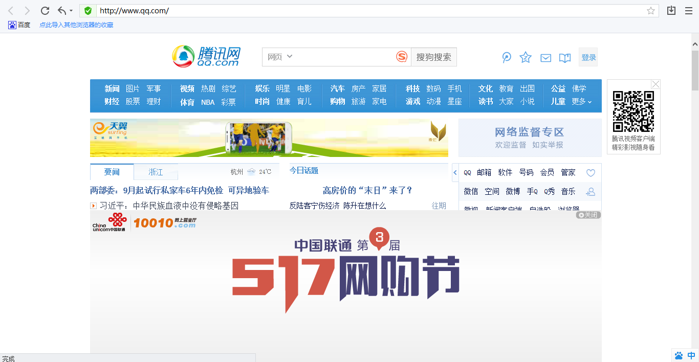 我又尝试在开启强力模式下访问了新浪,腾讯门户,