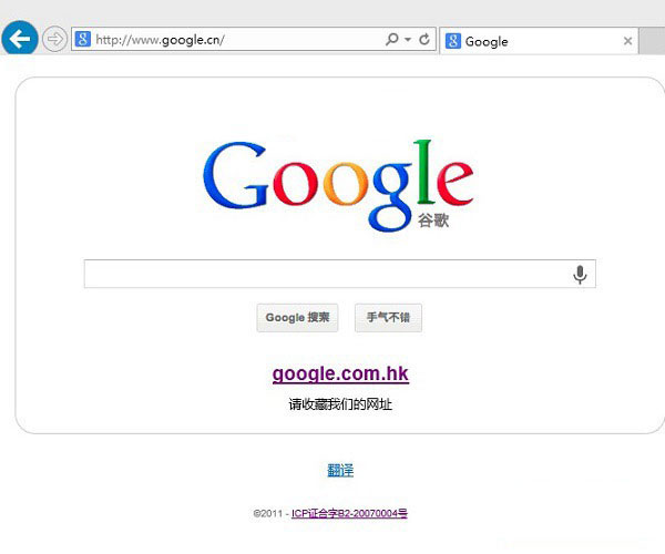 早年,谷歌在我国提供google.com和google.cn服务,2010年谷歌退出中国,将服务器转移至香港,域名google.cn被关闭,当时大陆用户输入域名google.com,直接跳转至google.com.hk。2014年1月,国内用户可以访问域名google.cn,不过点击搜索,仍是google.com.hk提供的结果。