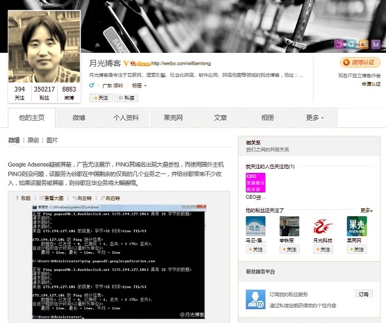 从中可以看到,这两个域名网络访问普遍,经常会出现明显的掉包现象,另外有一个不出所料的结果,其两个域名ping出来的IP地址均为“美国”,如下图所示: