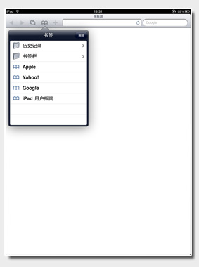 在主菜单中找到Safari图标,用手指轻触图标便可以轻松利用iPad进入上网冲浪。